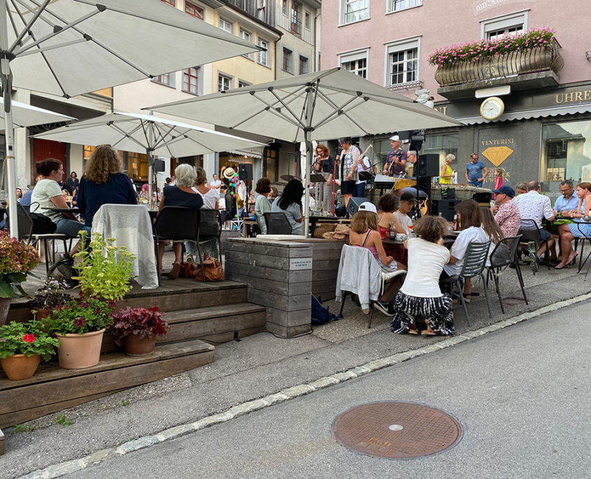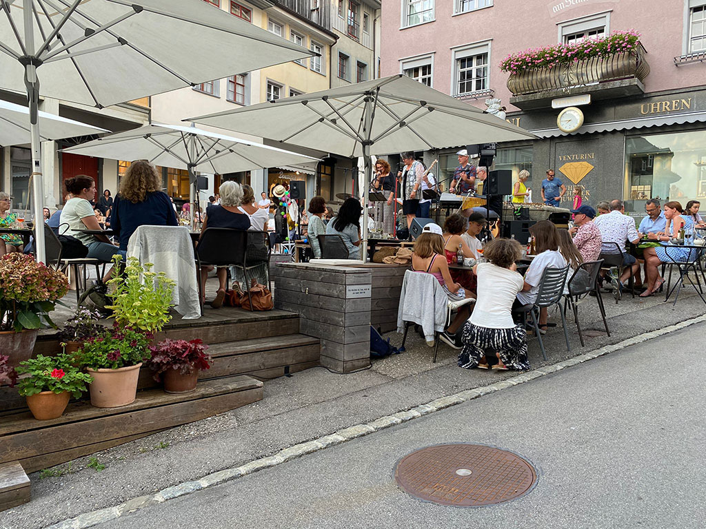 Am Freitag, 13. August 2021 durfen wir auf der Terrasse vom La Moka spielen. Es war ei wunderschöner Abend. danke an alle die es ermöglicht haben.